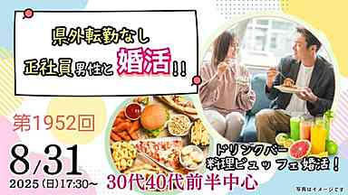 8月31日(日)17時30分~【男性33~43歳、女性32~44歳】30代40代前半中心!県外転勤ナシ&正社員(安定収入職も)男性to婚活